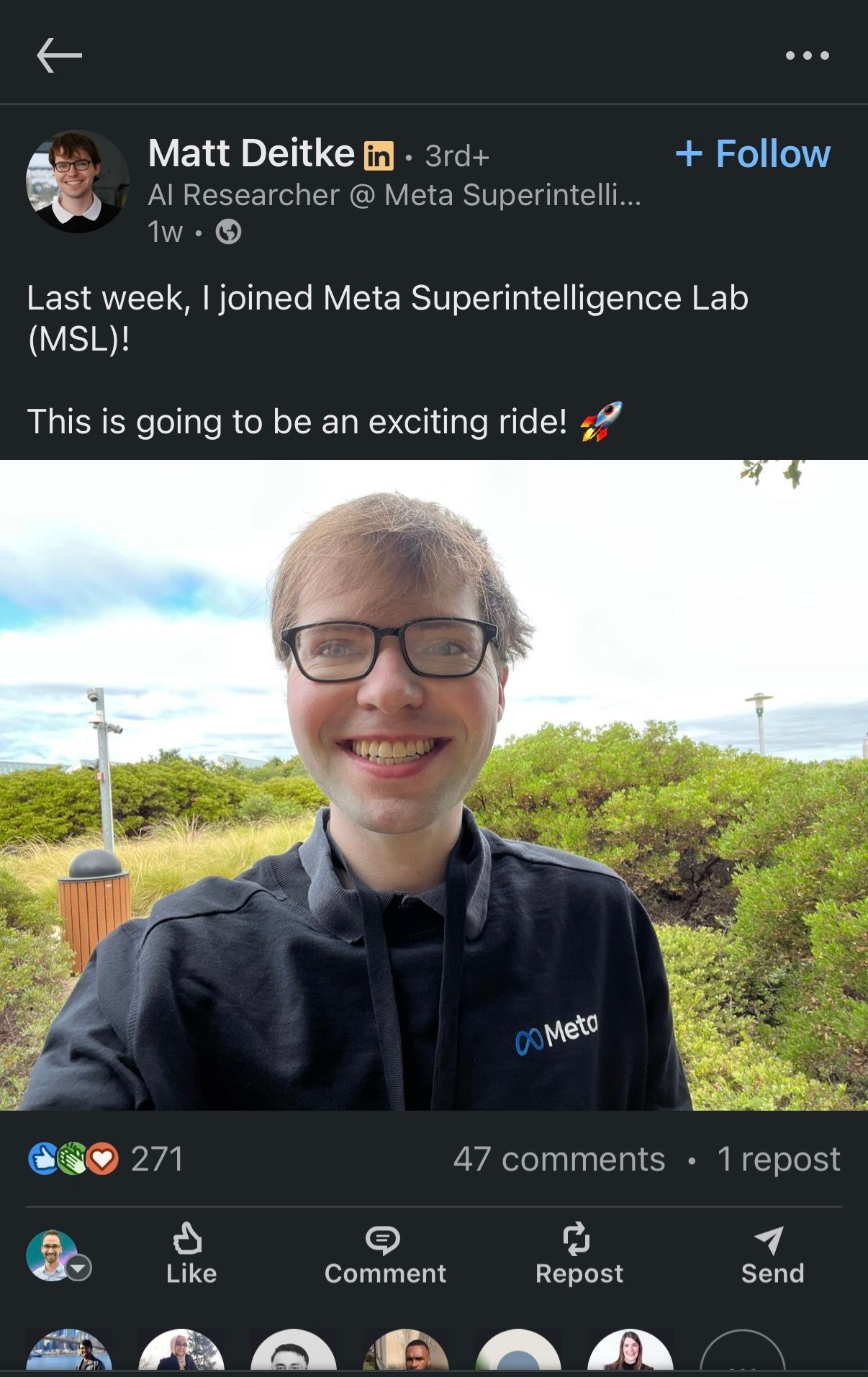 I love how casually Matt made this post, like it’s a new job update anyone could share.