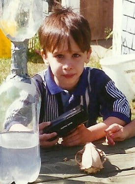 Lil Sam with some early experiments…the tornado bottle (remember those??) and my grandfather’s old camera.